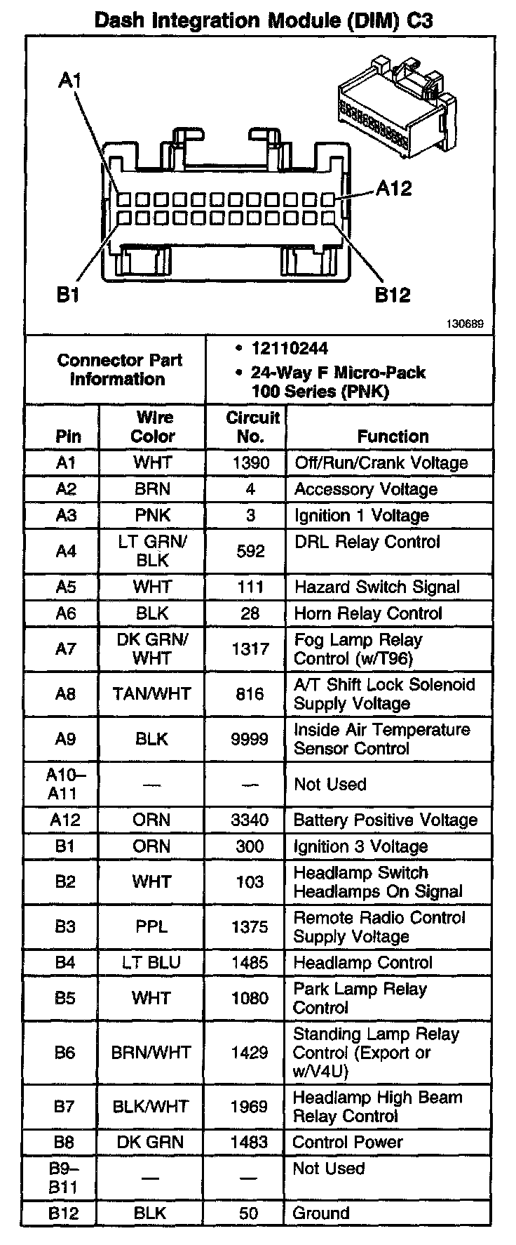 Dash Integration Module (DIM) C1: