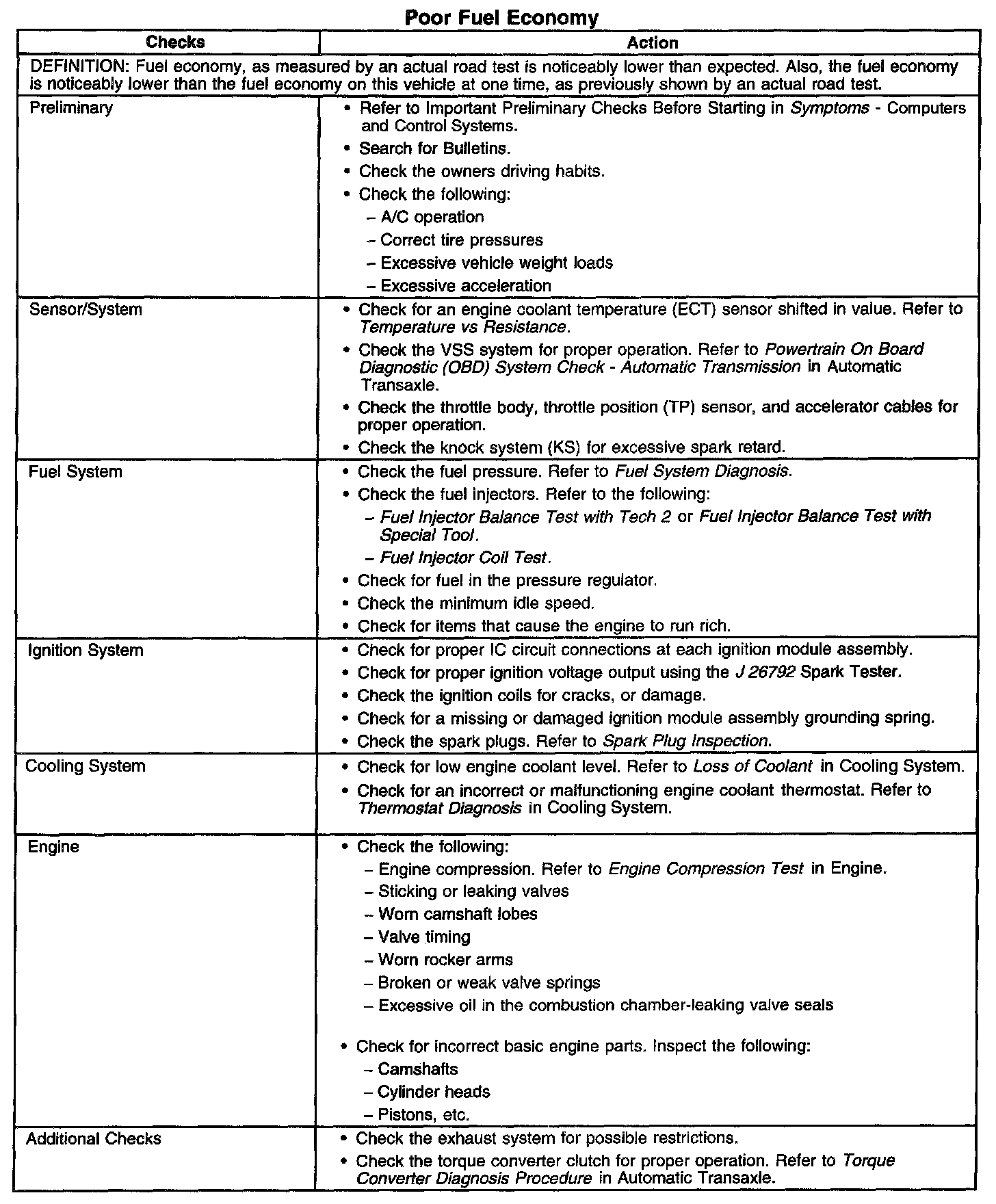 Poor Fuel Economy
