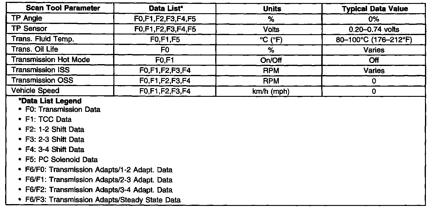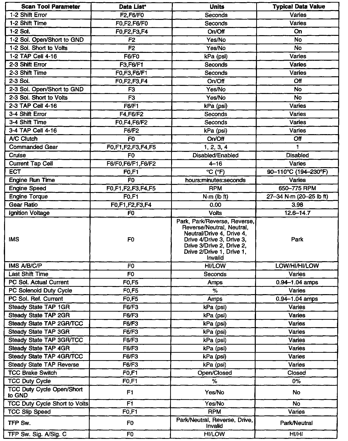 Only the parameters listed below are used for diagnosing. If a scan tool displays other parameters, the values are not recommended by General Motors for use in diagnosis.