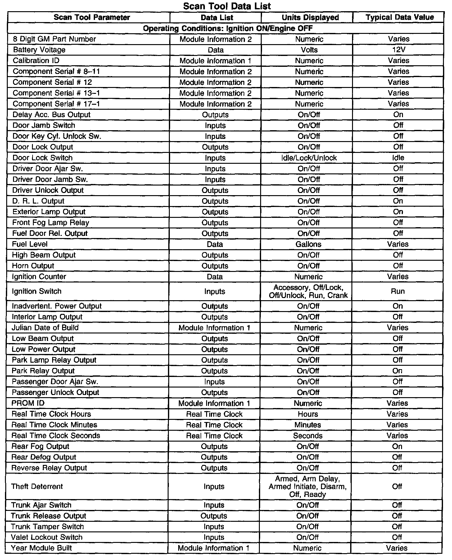 Scan Tool Data List: