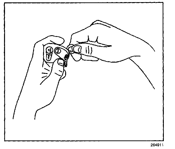 REMOVAL PROCEDURE1. Insert a small coin between the 2 halves of the transmitter case at the slot provided near the key ring hole.