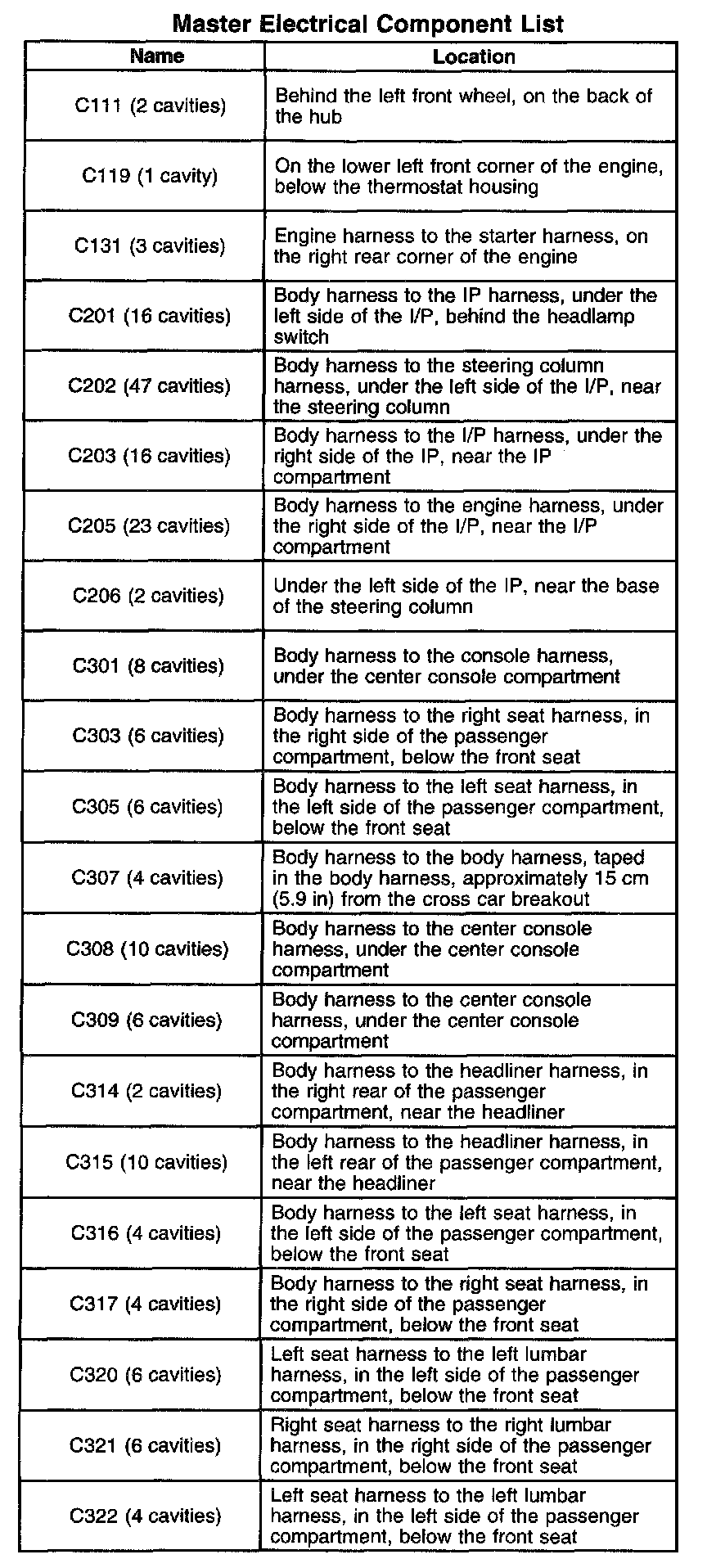Master Connector List