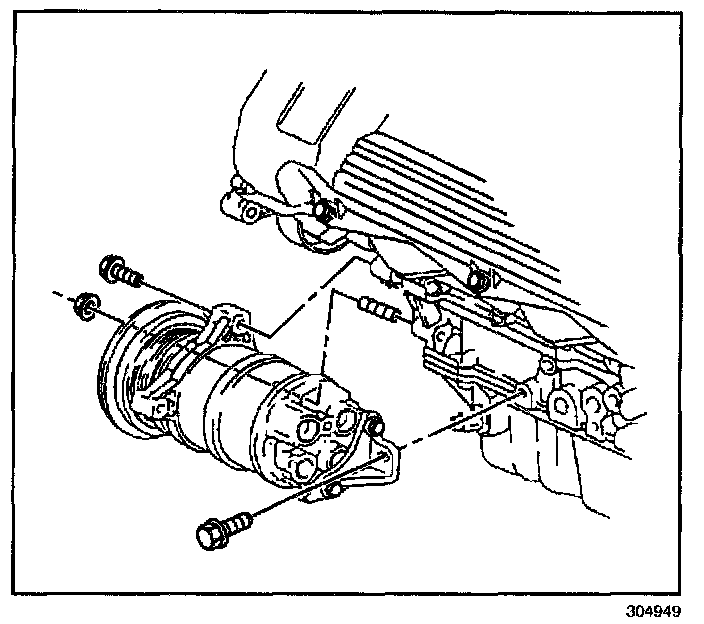 9. Remove the compressor mounting bolts.