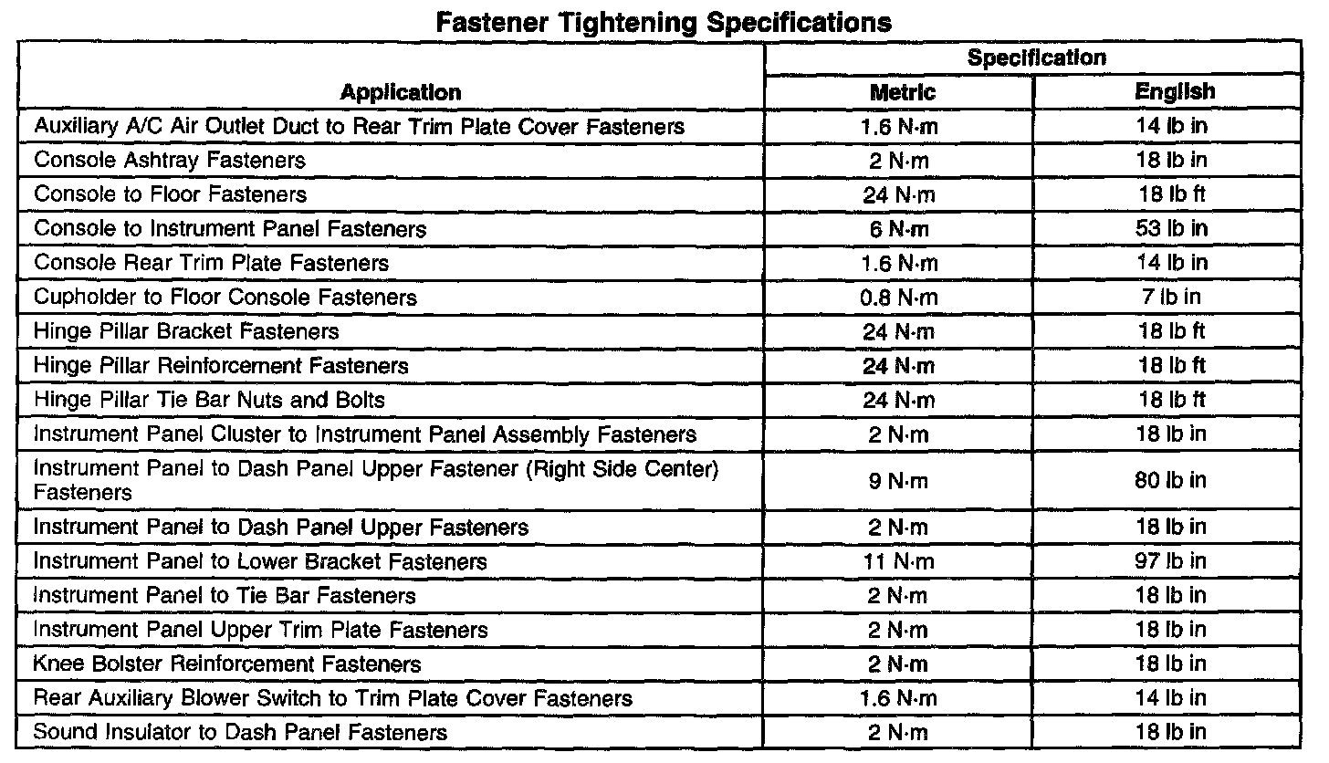 Fastener Tightening Specifications: