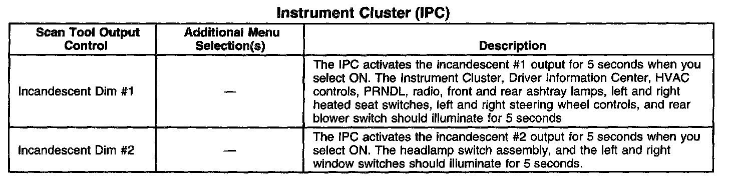 Scan Tool Output Controls - Instrument Panel Cluster (IPC)