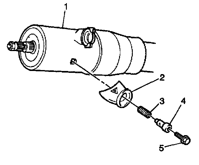 3. Remove the hazard knob mounting bolt (5) and hazard knob (2) from the steering column.