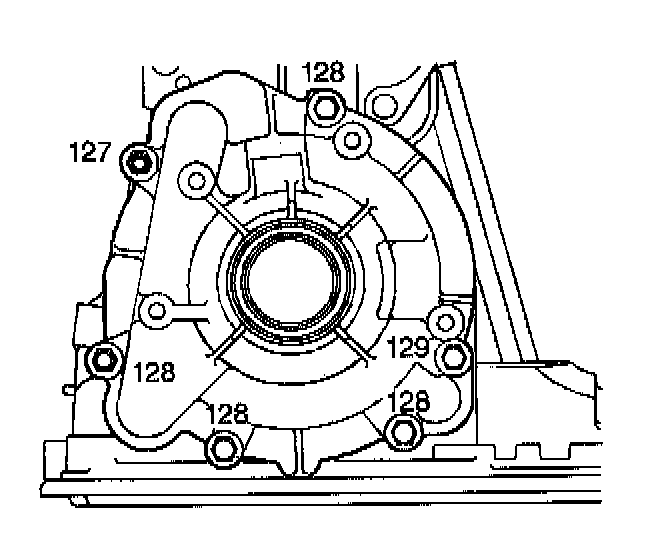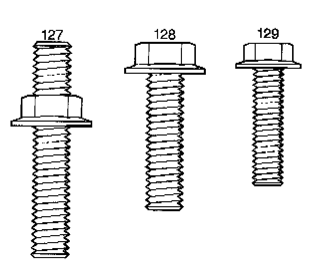 8. Apply pipe thread sealant GM P/N 12346004 to bolt threads before installation. Install the case extension bolts (128, 129).
