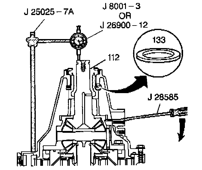 11. Position the dial indicator with the stem contacting the output shaft (112). Set the dial indicator to zero.