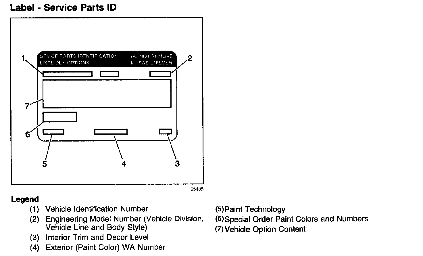 The Service Parts Identification Label aids the service personnel in identifying the parts and options originally installed on the vehicle. The label is located on the spare tire cover.