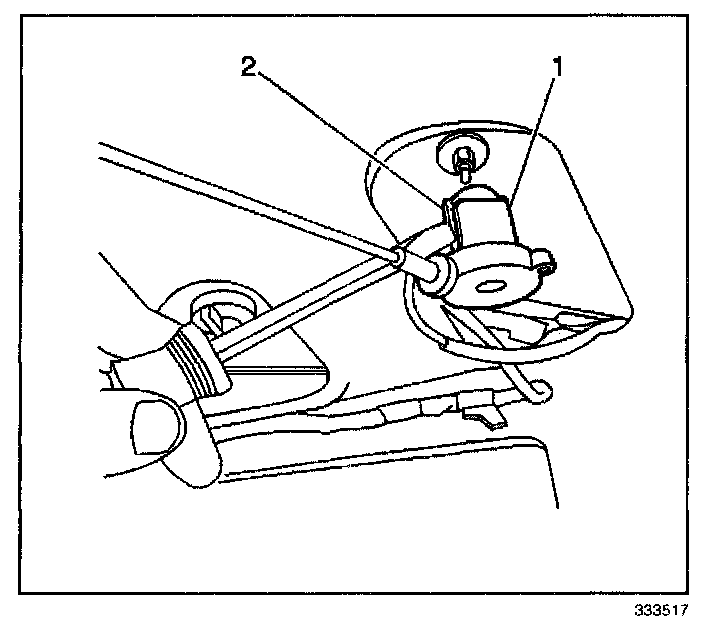 3. Remove the latch release cable (1) from the lid lock cylinder (2).