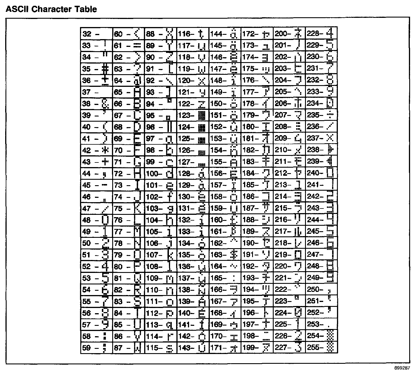 Use these numbers (32 through 255) to enter the corresponding symbols for Driver ID