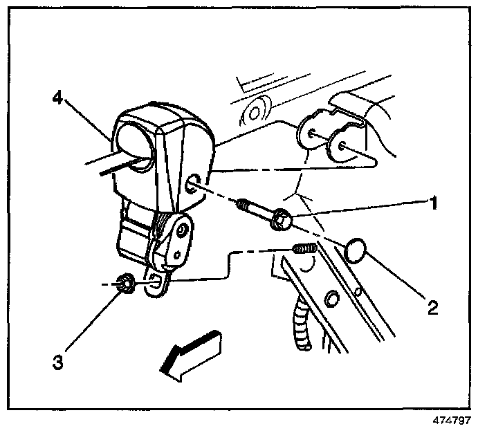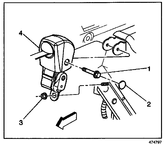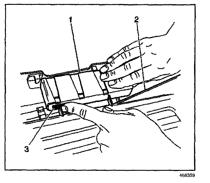 10. With the clip (3) depressed slide the express module toward the sunroof actuator motor.