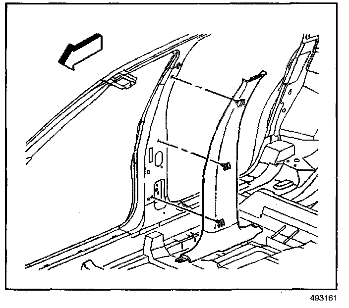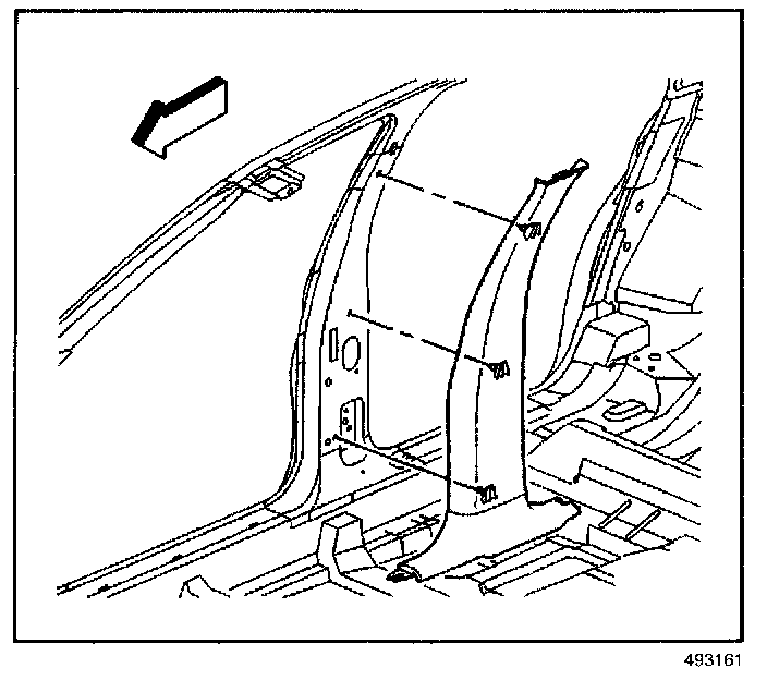 IMPORTANT: Release the passenger side center pillar trim garnish molding upper retainer.