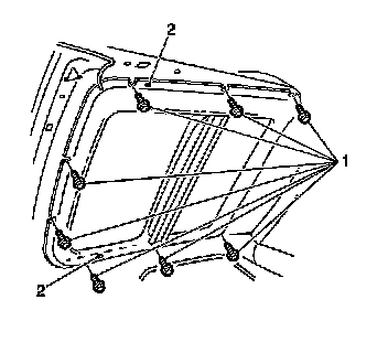 Tighten the sunroof module bolts (1) to 9 N.m (80 lb in).