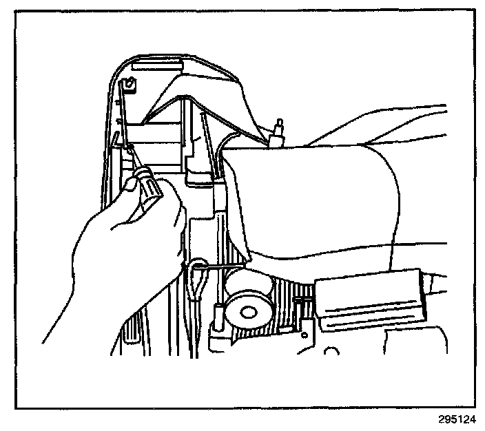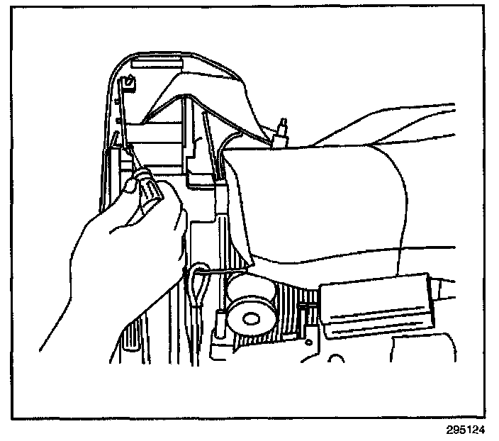 ^ Push in on the flat-bladed tool to release the head restraint retaining clips.