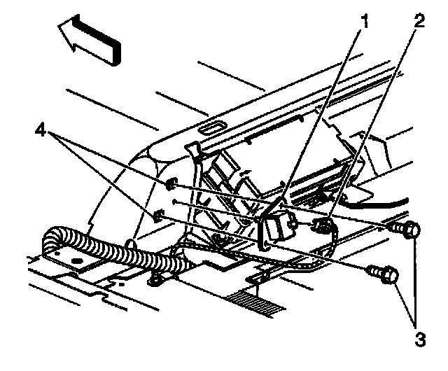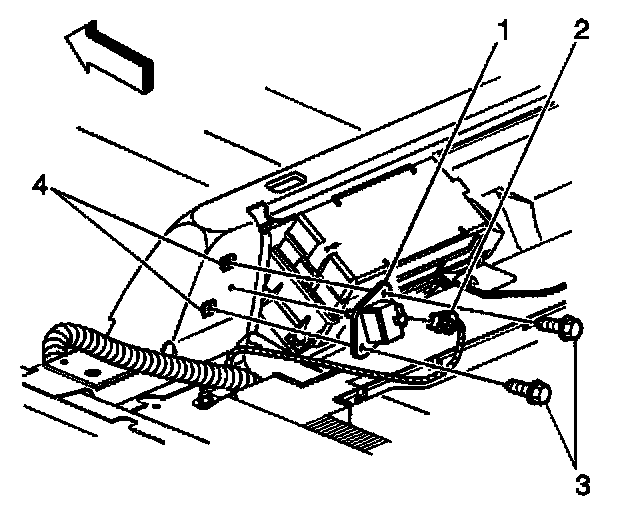 4. Disconnect the lateral accelerometer sensor electrical connector (2).