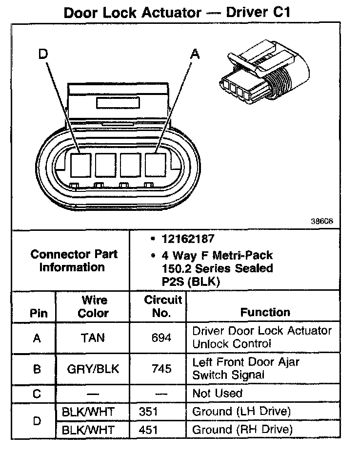 Door Lock Actuator - Driver C1: