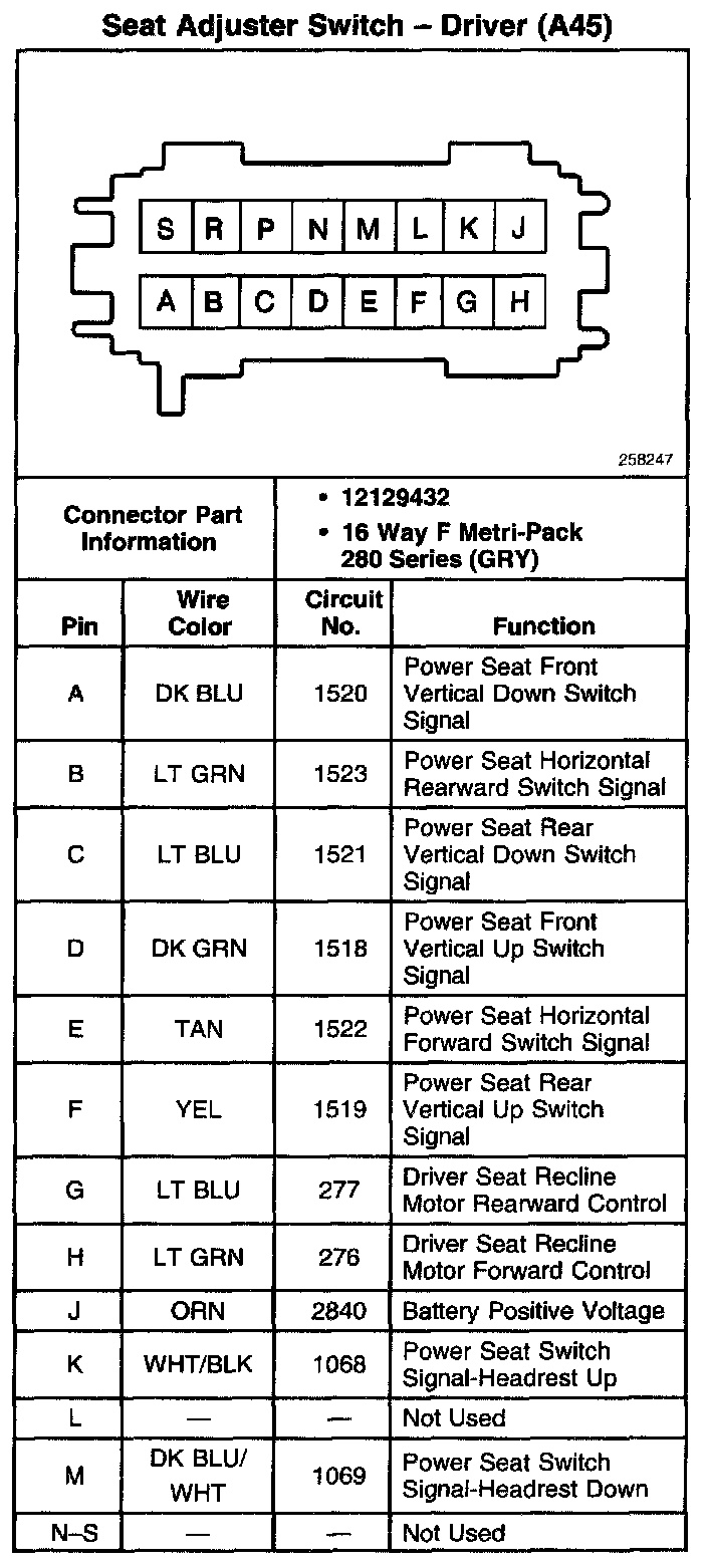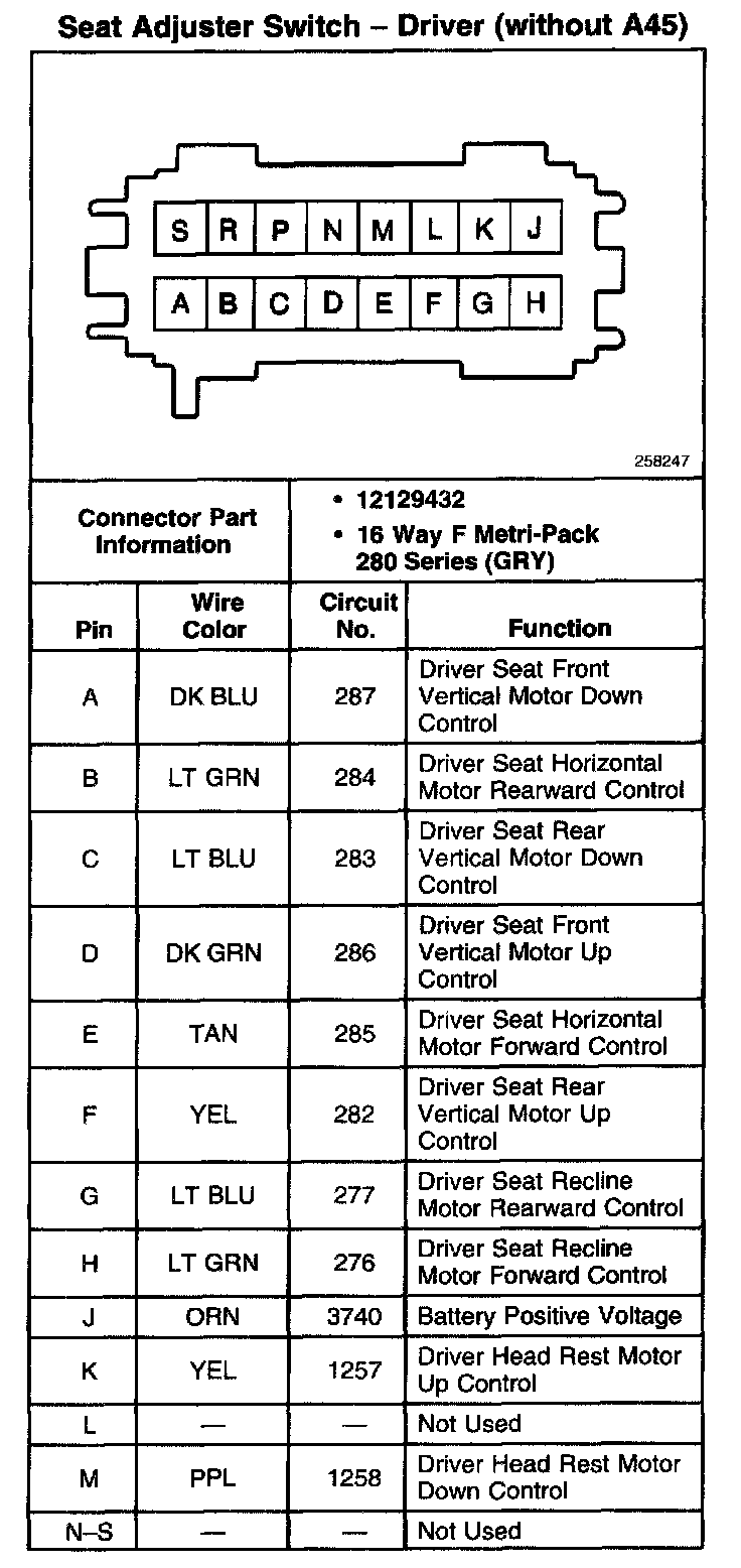 Seat Adjuster Switch - Driver (A45):