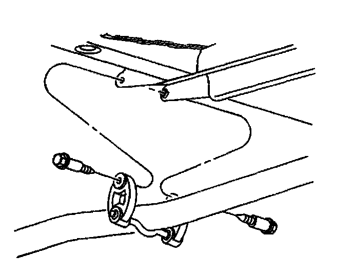 7. Install the two bolts securing the center exhaust hangers to the rear suspension support brackets.