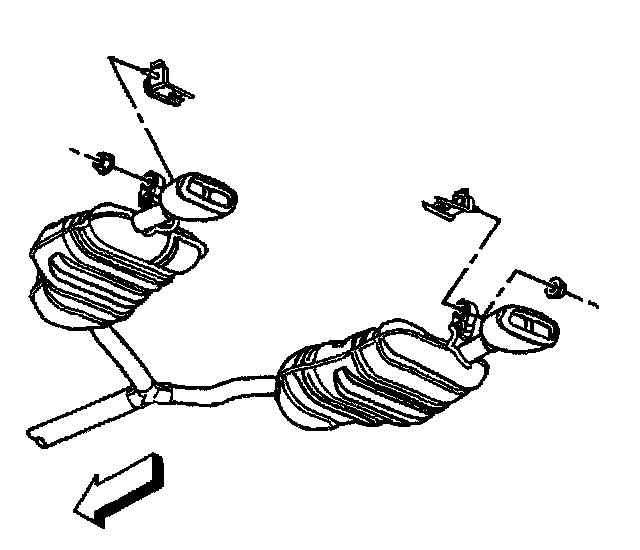 12. Remove the rear exhaust hanger brackets from the rear exhaust hangers.