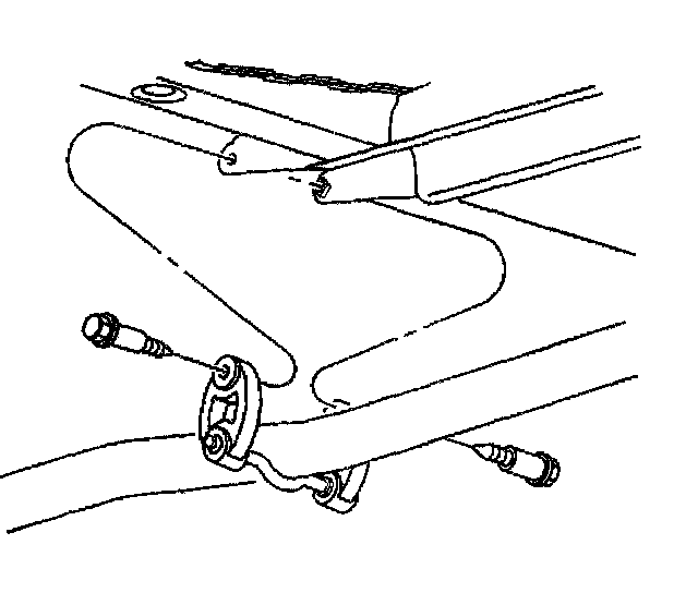 6. Install the two bolts securing the rear exhaust hanger brackets to the rear compartment rails.
