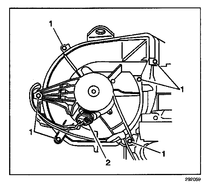 8. Remove the blower motor retaining fasteners (1).
