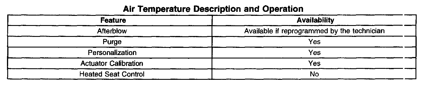 DUAL ZONE CONTROL SWITCHThe right air temperature switch is provided to allow the passenger to offset air discharge temperatures on the right side of the vehicle. Passenger temperatures can be set anywhere between 16°C (60°F) to 32°C (90°F). The temperature switches operate independently from each other. For best results, the passenger offset should only be 2°C (4°F) cooler or warmer than the drivers setting. To activate the dual zone, the passenger either presses on or turns the right air temperature switch to the desired offset. A signal is sent from the HVAC control module (IPM) to the right air temperature actuator on the auxiliary air temperature door control circuit. The passenger side temperature will appear on the VF display to show the desired temperature. Temperature offset will be allowed as long as the driver set temperature is not in maximum hot or cold. If the right air temperature switch has been turned on, it can be turned off by pressing the right air temperature switch. Greater sunload on one side of the vehicle may cause the discharge air temperatures to be different, even when the HVAC system is not operating in a dual zone mode.