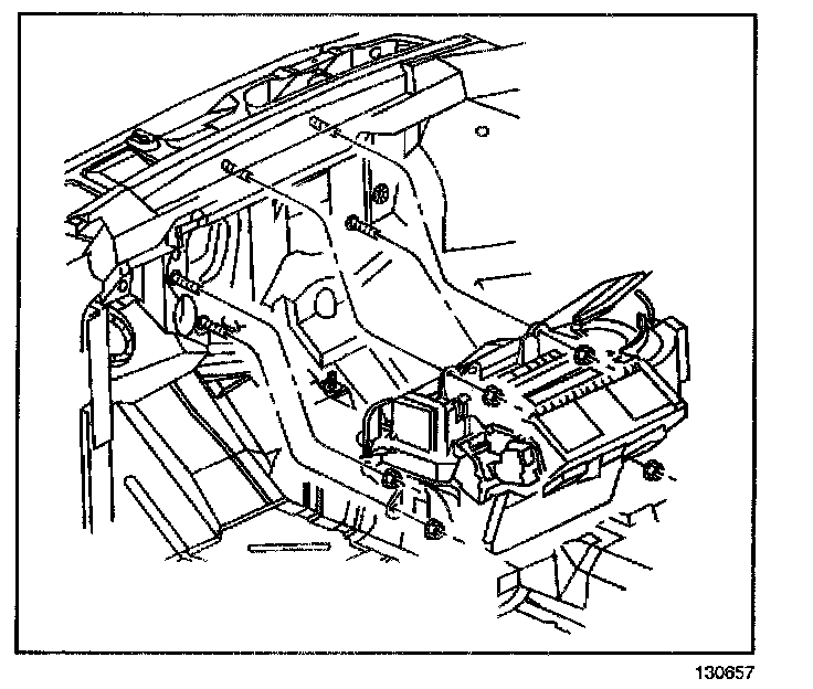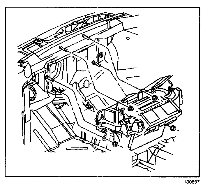9. Remove the heater and evaporator module retaining nuts.