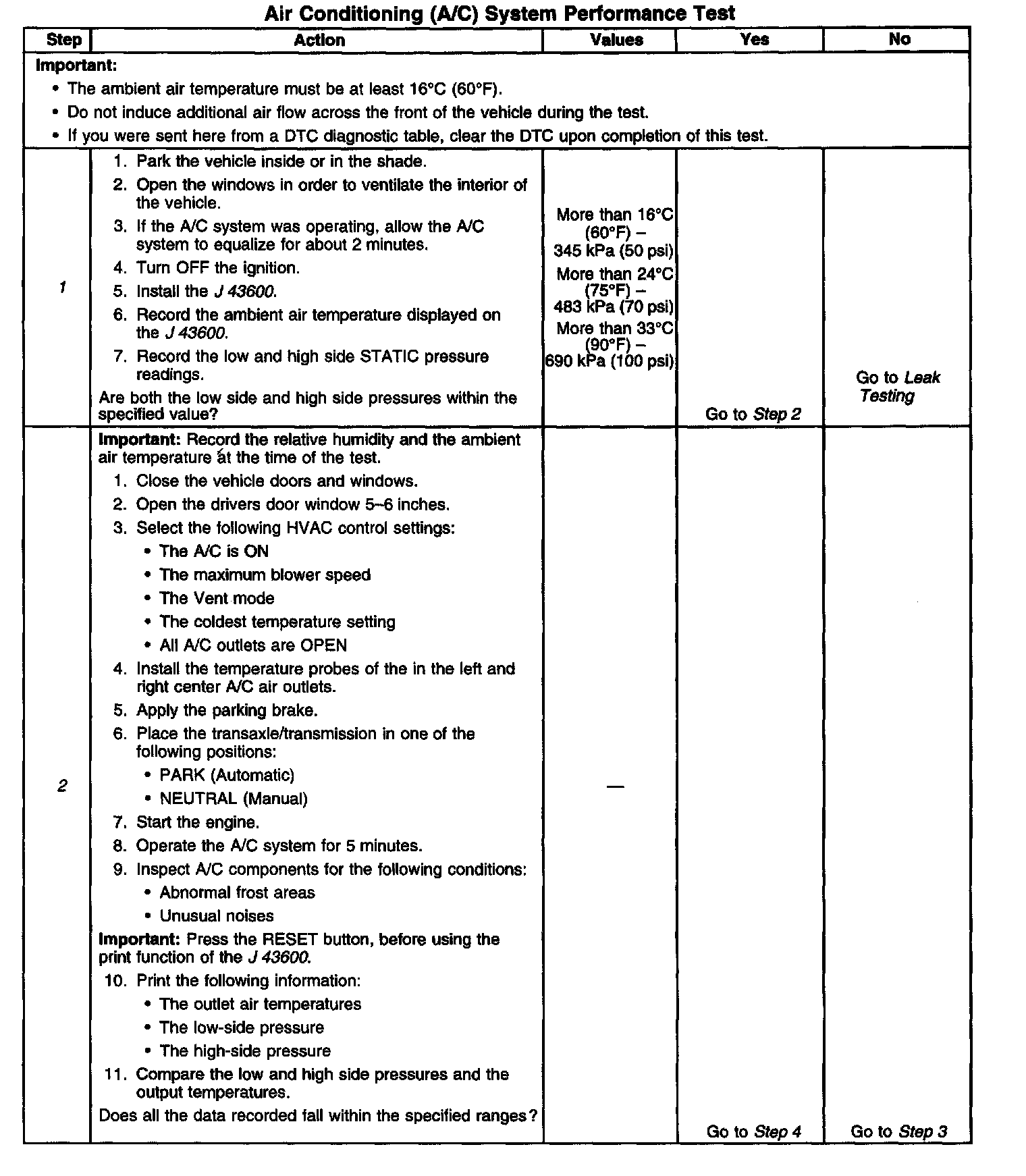 2. This step measures the performance of the A/C system.
