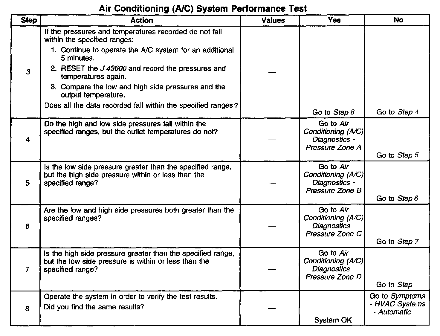 1. This step determines if the A/C system has at least the minimum refrigerant charge required to operate the system without damage.