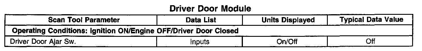 Scan Tool Data List - Driver Door Module (DDM)