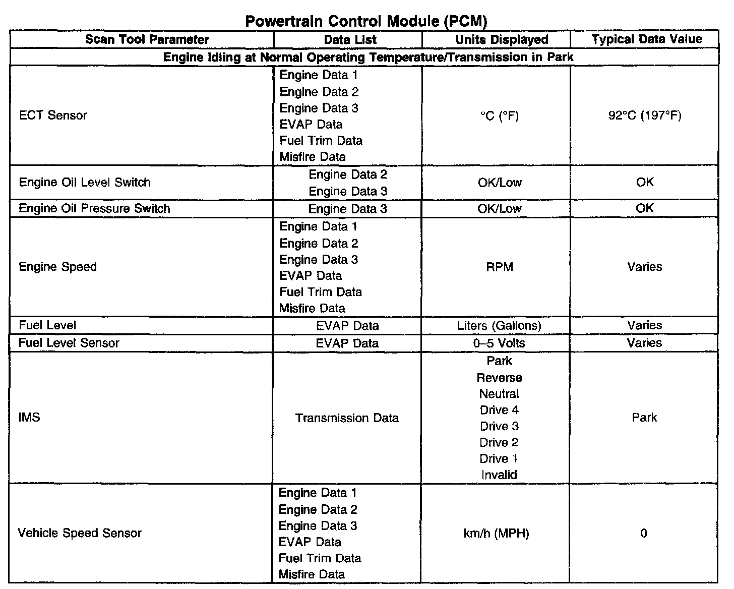 Scan Tool Data List - Powertrain Control Module (PCM)