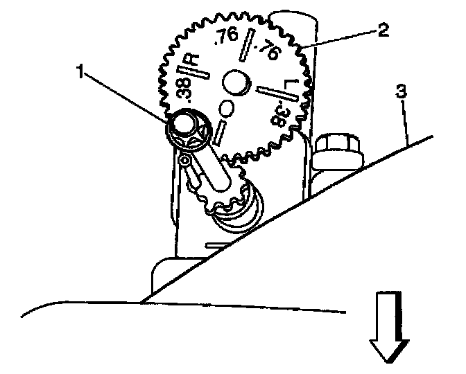 7. Set the horizontal aim gage (2) to the 0 (zero) mark by turning the horizontal aim screw (1) until the pointer is lined up with the 0 (zero).