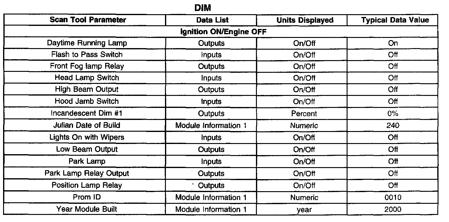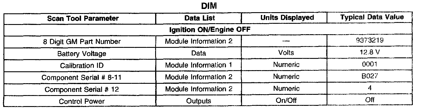Scan Tool Data List - Dash Integration Module (DIM)