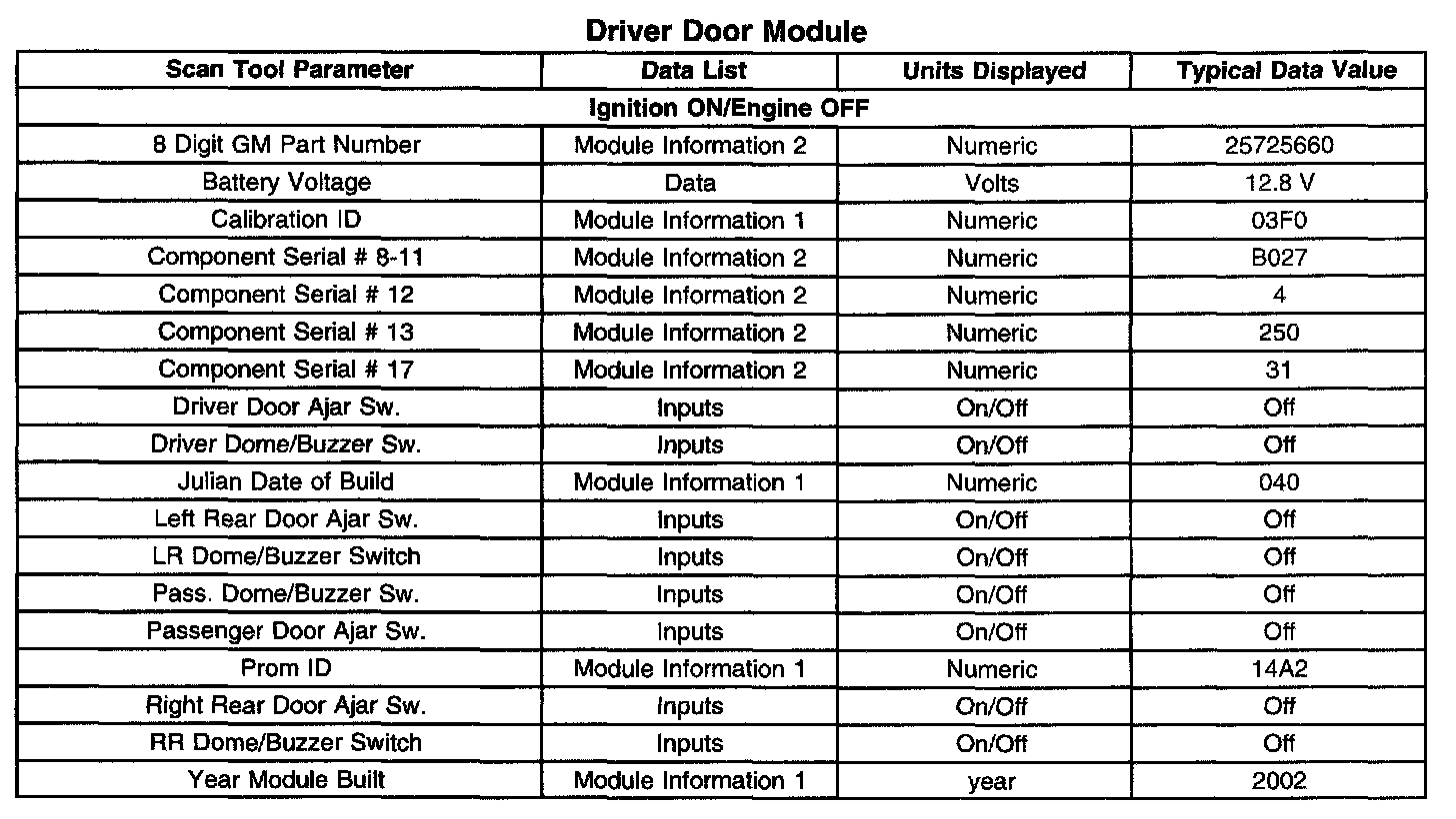 Scan Tool Data List - Drivers Door Module (DDM)