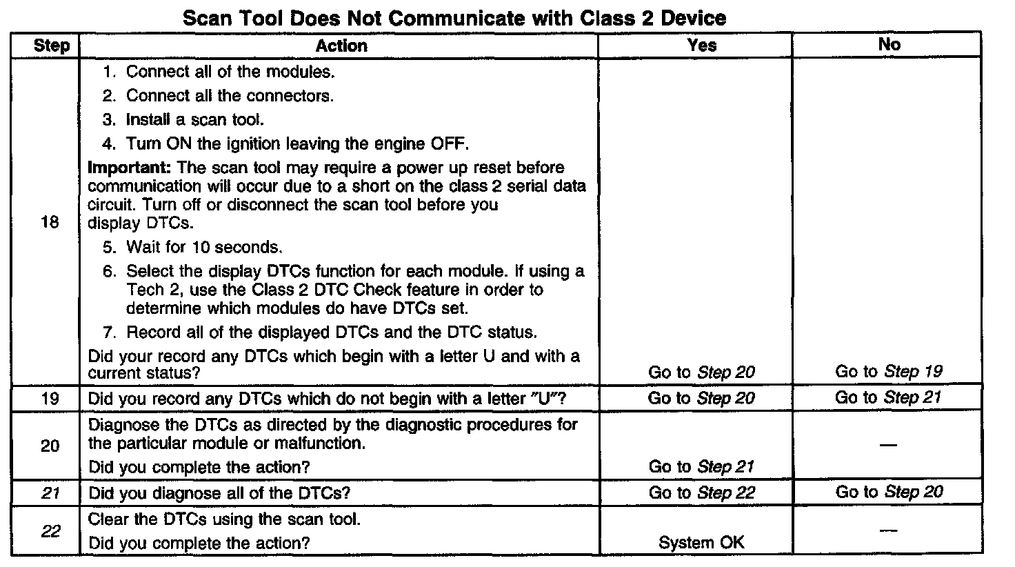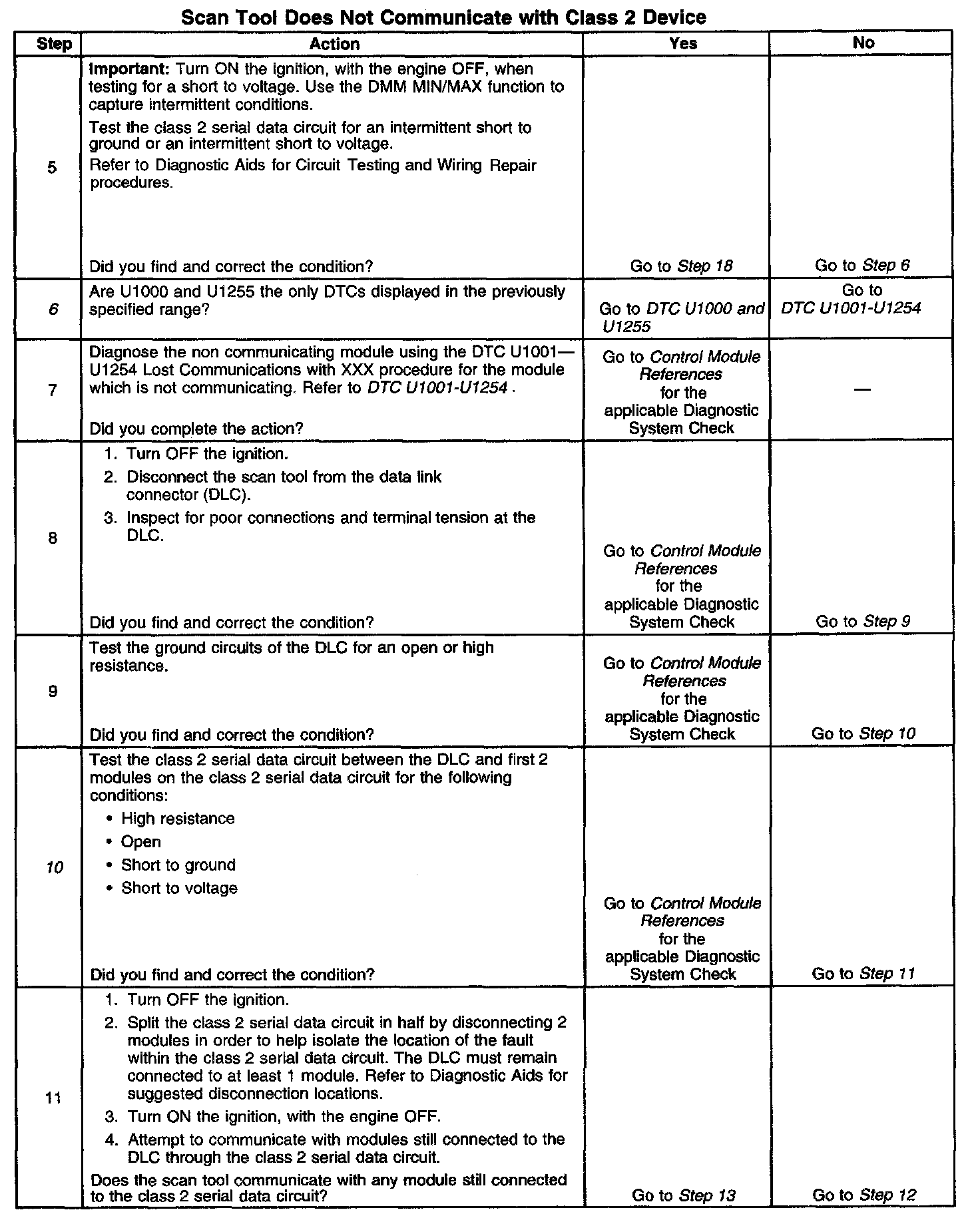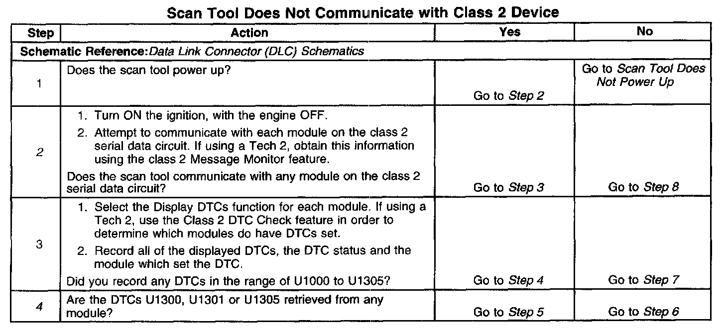 12. An open between the DLC and the class 2 serial data circuit will prevent the scan tool from communicating with any module. This condition will not set a DTC.