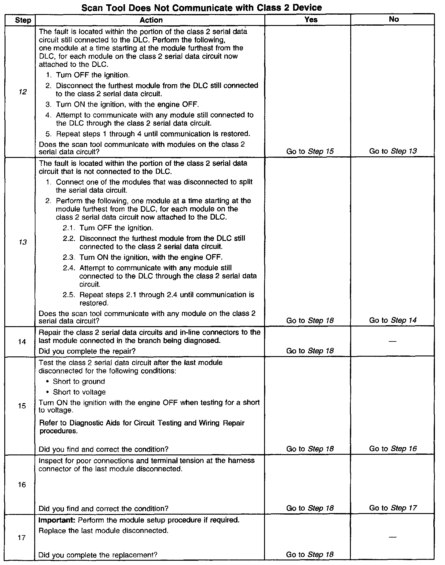 2. A partial malfunction in the class 2 serial data circuit uses a different procedure from a total malfunction of the class 2 serial data circuit.