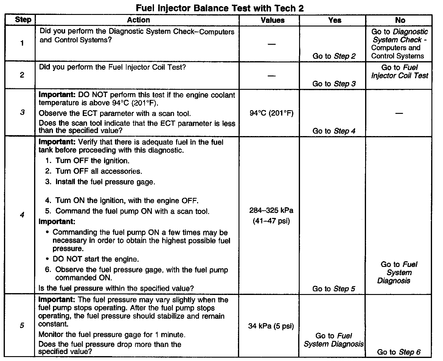 5. The fuel pressure should reach a steady value. Refer to Fuel System Diagnosis if the fuel pressure does not stabilize. Component Tests and General Diagnostics