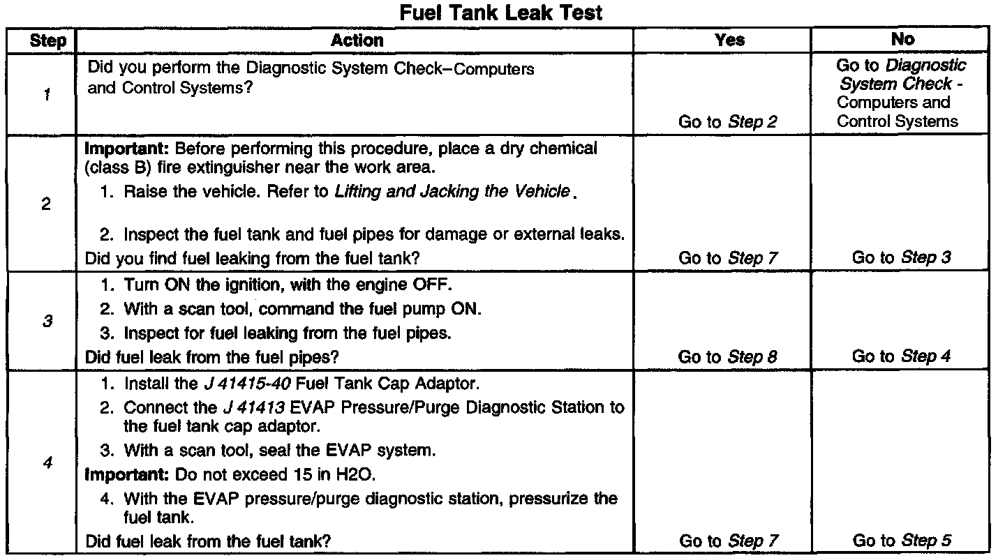 ^ Operate the vehicle under the condition of the customers concern. Under high temperature conditions fuel vapors may increase to the point of EVAP canister vapor saturation. Fuel vapors would then be released into the atmosphere. Once the engine is running and EVAP purge is enabled, all fuel vapor release would be eliminated.