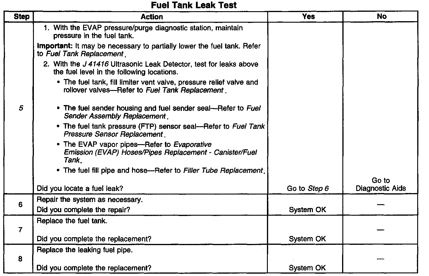 5. This test is to locate fuel vapors escaping above the fuel level in the fuel tank.