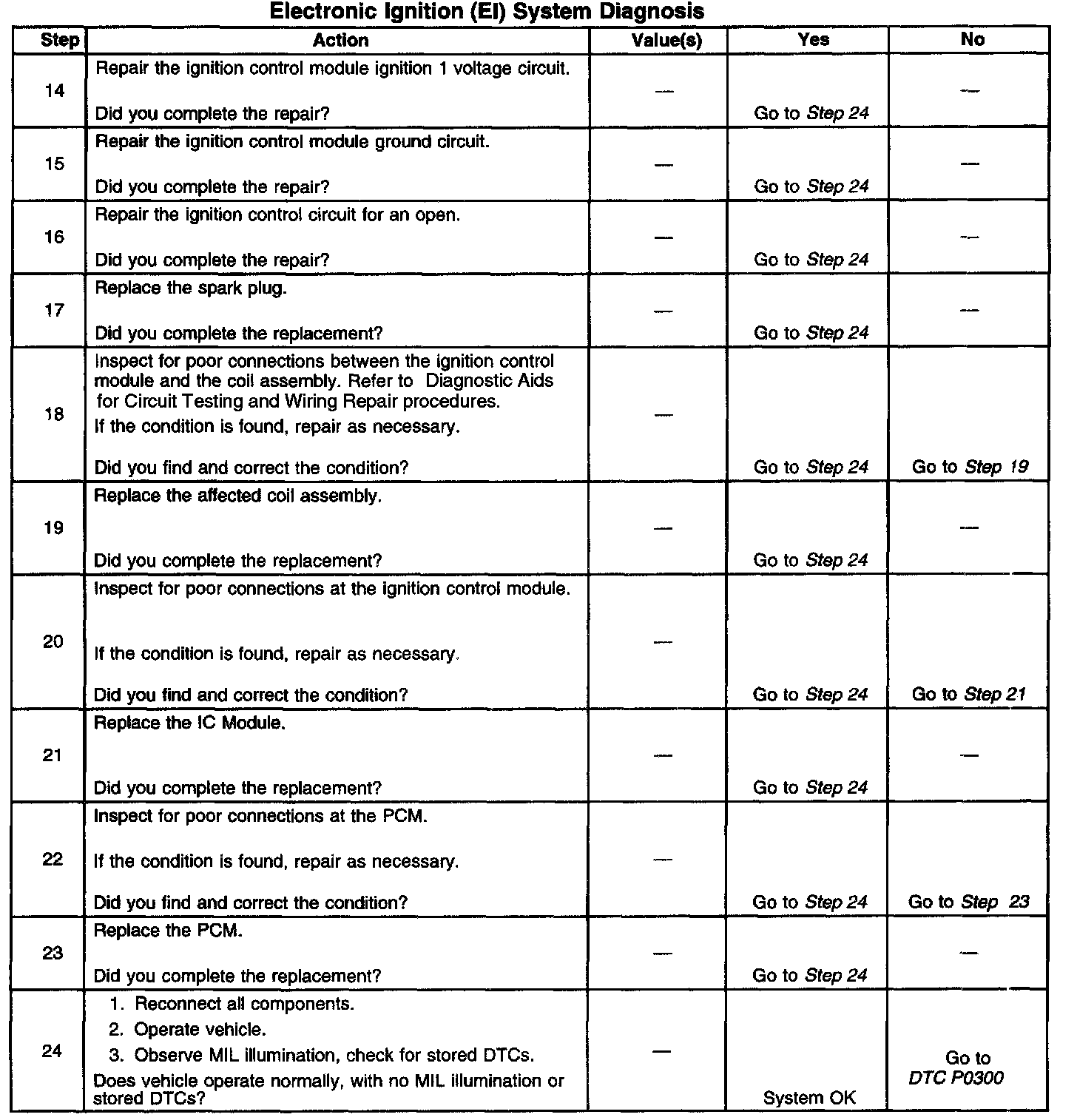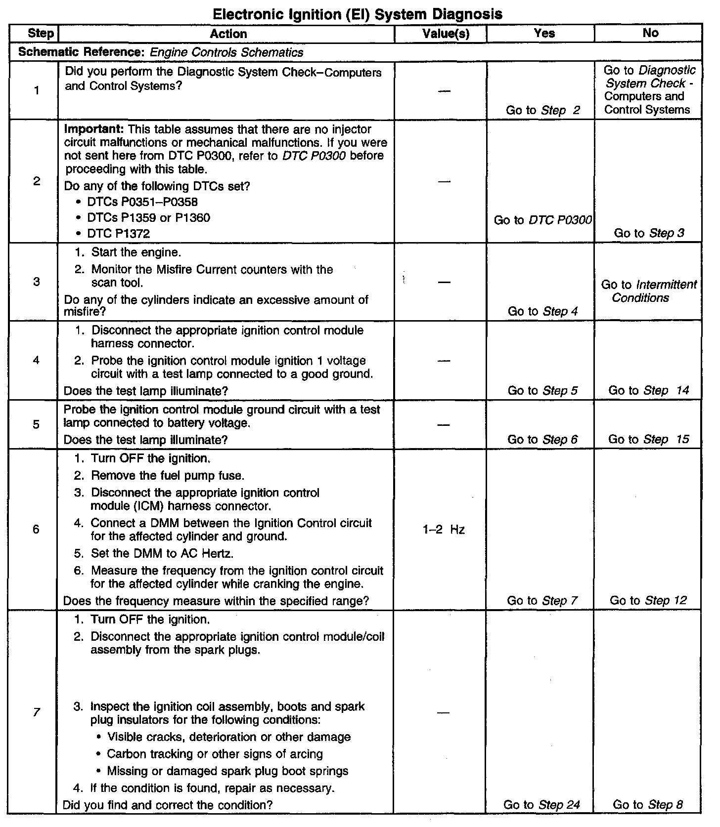 The numbers below refer to the step numbers on the diagnostic table.