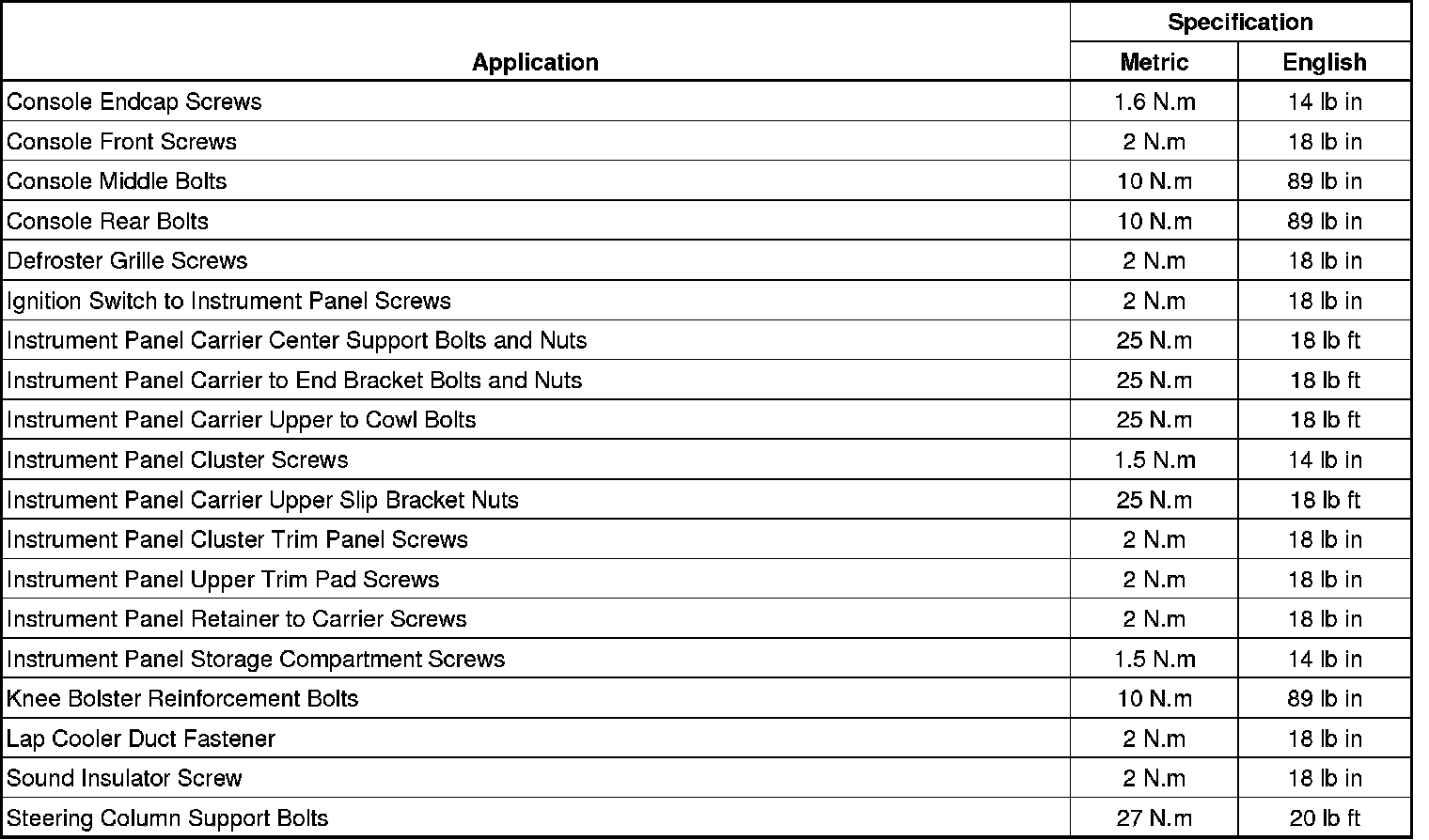 Fastener Tightening Specifications