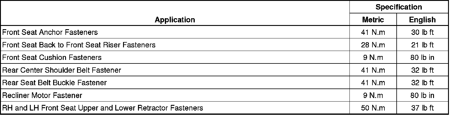 Fastener Tightening Specifications