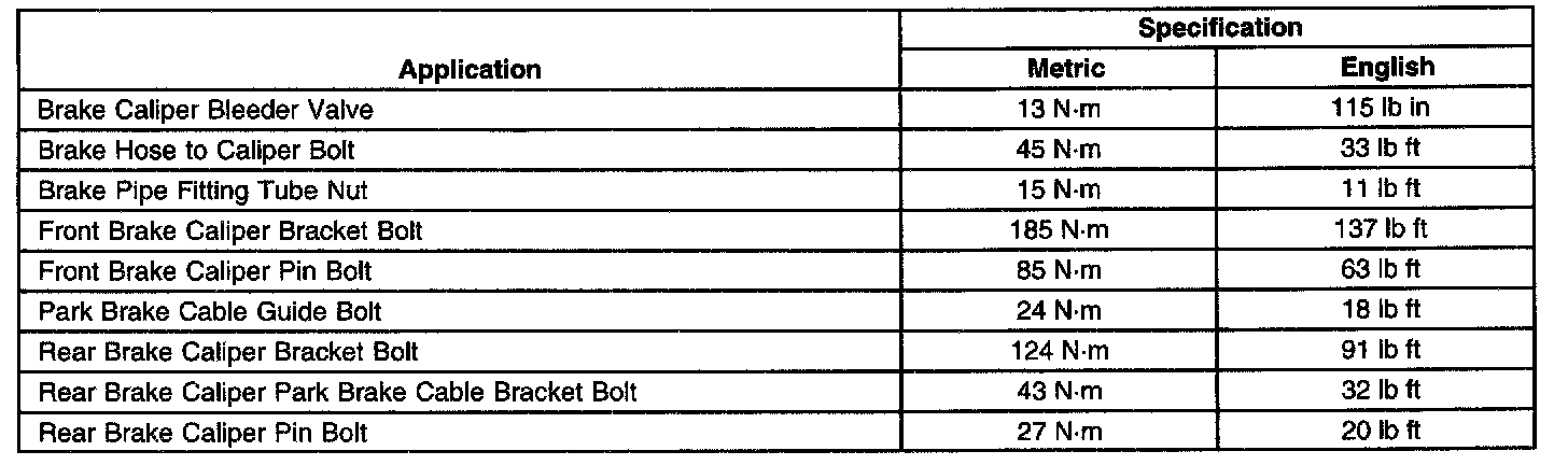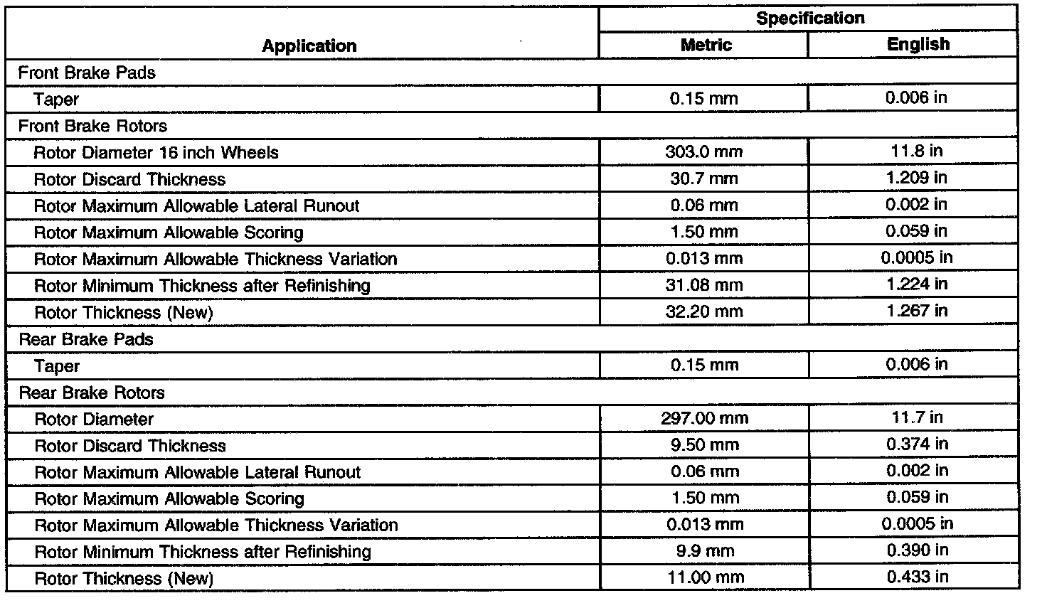 Disc Brake Component Specifications