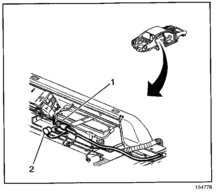 4. Route the battery cable (1) along the rocker panel and install the cable retainers (2).