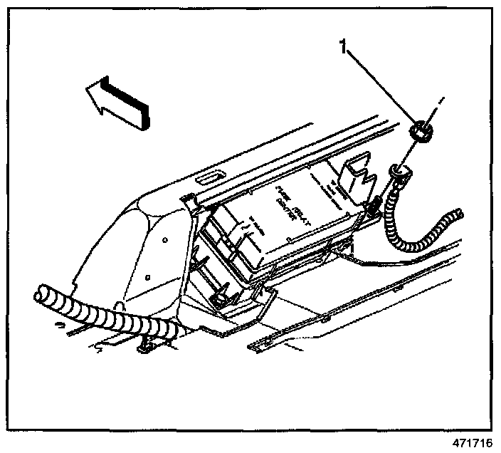 3. Remove the nut (1) securing the positive battery cable to the rear fuse block.