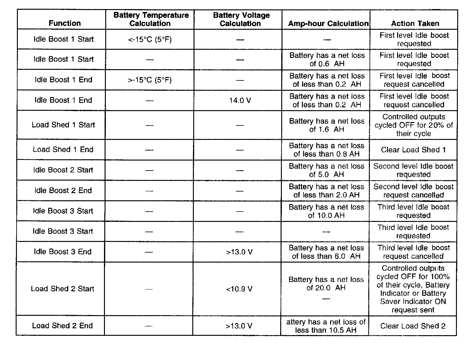 Each load management function, either idle boost or load-shed, is discrete. No two functions are implemented at the same time.
