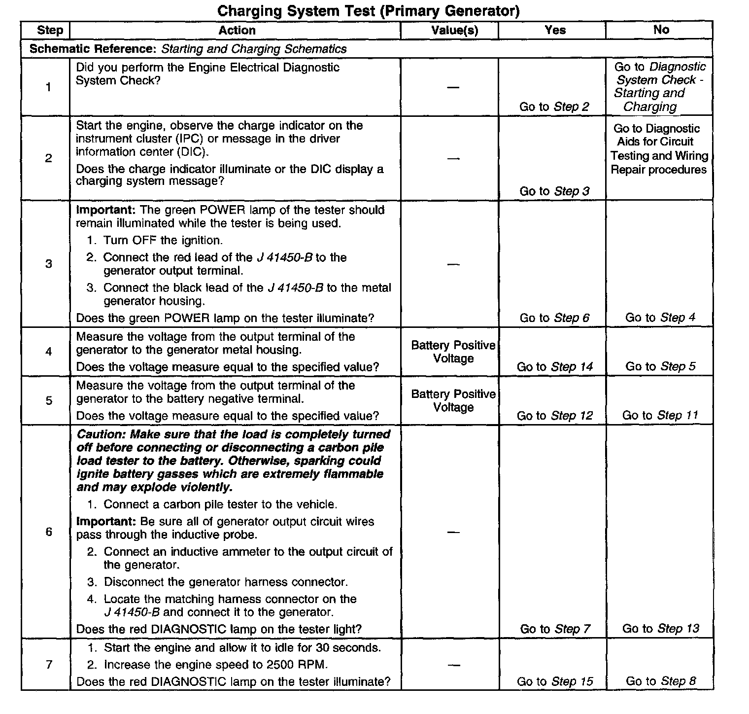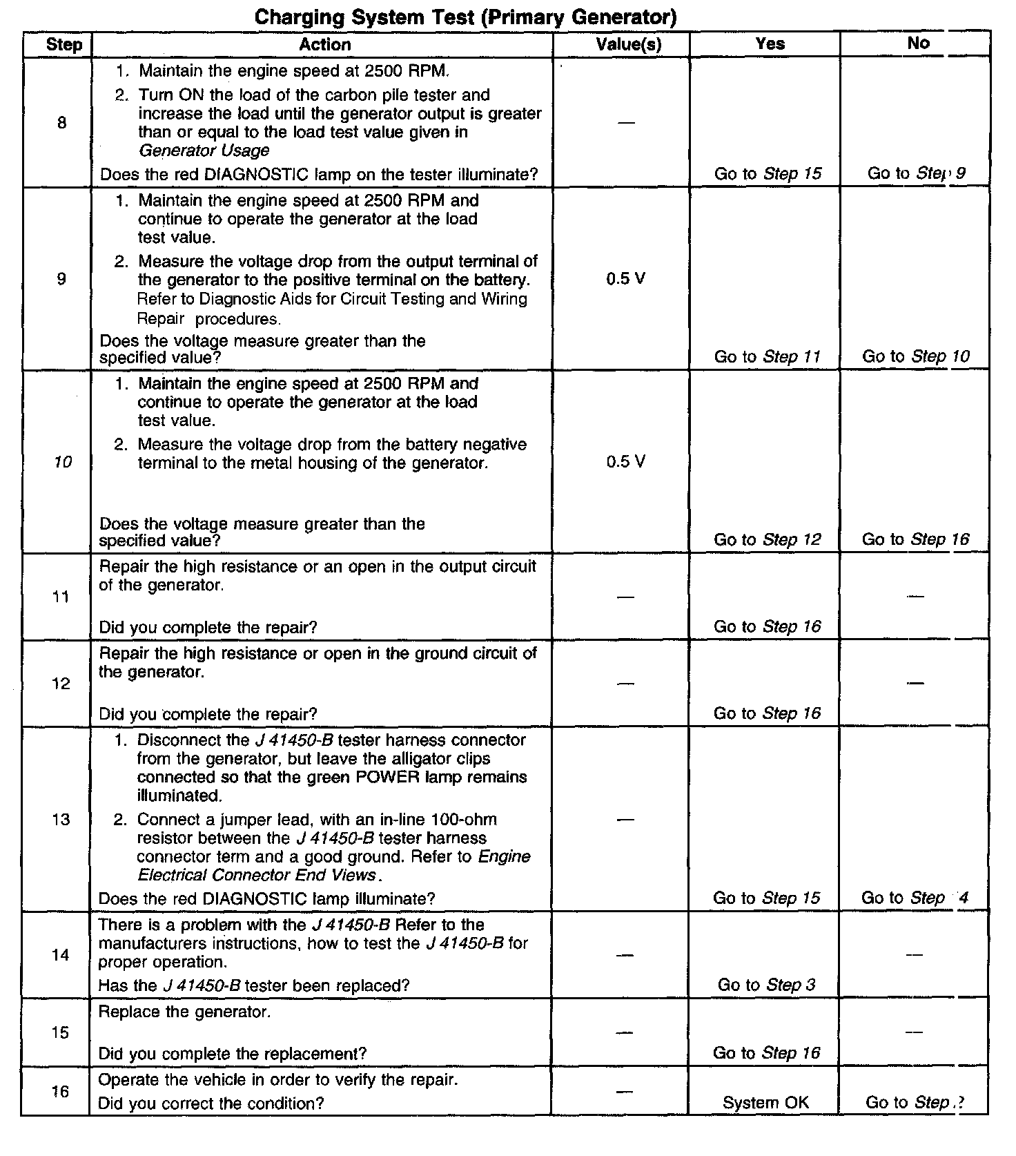 10. If the test has shown the generator to be OK, however the condition remains, test the PCM or its control circuit(s) to the generator.