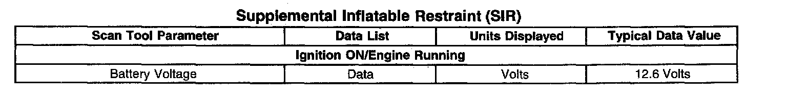 Scan Tool Data List - Supplemental Inflatable Restraint (SIR)