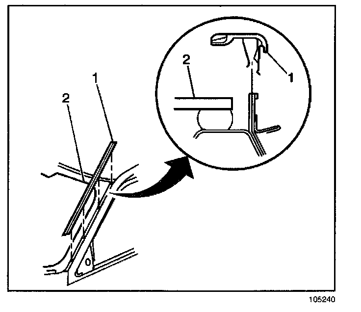 REMOVAL PROCEDURE1. Starting at the bottom of the reveal molding 1 pull the molding off of the windshield pillar flange.